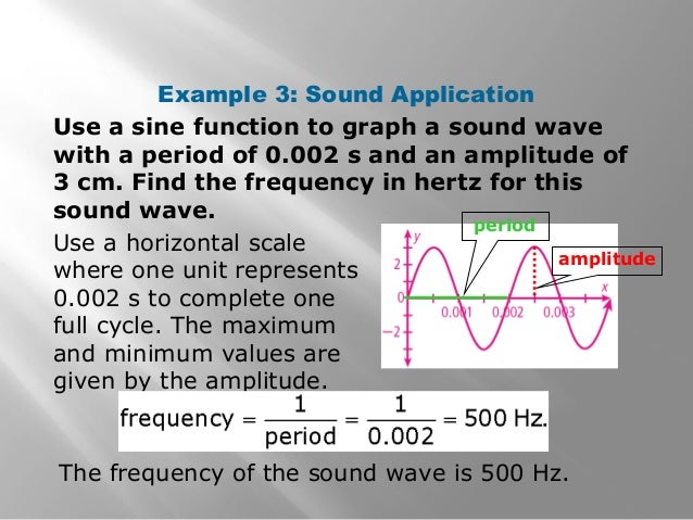 What graphs are used in frequency distribution? Something that repeats once per second has a period of 1 s. 31 2 4 5 6 7 8 9 time in seconds 3 cycles. What is the range of sine and cosine functions? The function plotted is y = sec (π t ). Finding the frequency of the secant function. Phase shift is c (positive is to the left) vertical shift is d; One cycle per second is given a special name hertz (hz). Note that we are using radians here, not degrees, and there are 2 π radians in a full rotation. A sin function repeats regularly. #y(t) = sin(2pi f t)# Frequency is a measure of how. Y = a sin(b(x + c)) + d.